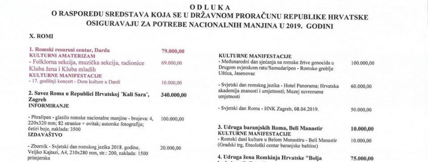 ODLUKA O RASPOREDU SREDSTAVA U DRŽAVNOM PRORAČUNU RH ZA POTREBE NACIONALNIH MANJINA U 2019. GODINI