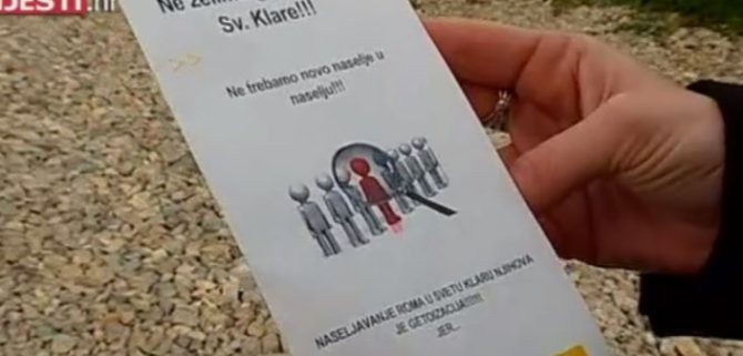 Na letku je diskriminacija zamaskirana u brigu za zajednicu, pa tako piše da su potpisnici peticije protiv naseljavanja i getoizacije Roma, no istodobno i za izgradnju vrtića, Doma zdravlja itd.