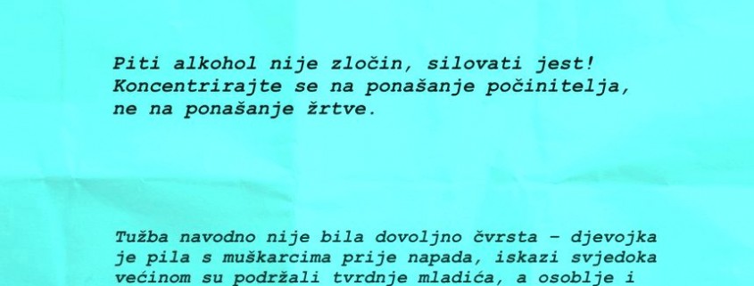 Koncentrirajte se na ponašanje počinitelja, ne na ponašanje žrtve. On je silovao, udario, ubio. Ona ima pravo odijevati se kako želi, piti alkohol, družiti se s kim želi. Ništa od toga nije kazneno djelo niti je nasilje posljedica ženina ponašanja. Žena nije kriva.